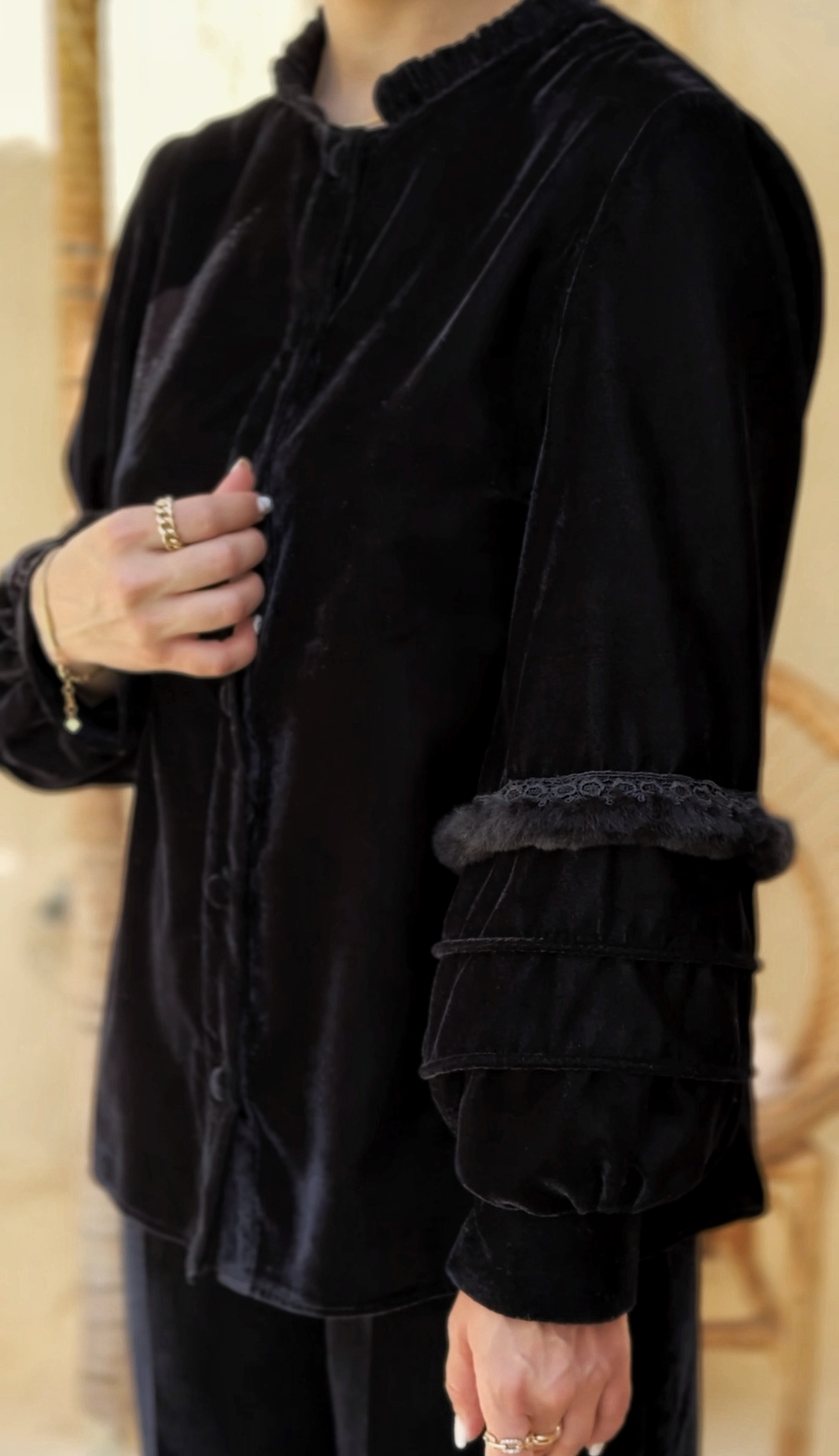 • نام محصول:ست شومیز و شلوار مخمل مشکی