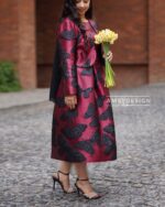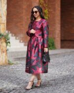 جنس ست پیراهن و کت قشنگمون ژاکارد vip بسیار با کیفیت هست.پیراهن زیر آستین حلقه ای و یقه گرد هست.