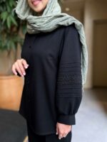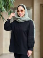 جنس شومیز قشنگ و کاربردیمون شانتون نخ هست.روی کارور و آستین نوار گیپور کار شده.