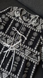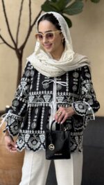 جنس این شومیز جذاب لینن قیطون دوزی شده هست.جلوی کار مغزی دوزی شده.