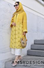 جنس این مانتوی خوش رنگ باتیک آینه دوزی هست که با پارچه ی ساده ترکیب شده و بسیار سبک و خنکه