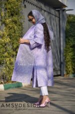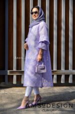 این مانتوی زیبامون با رنگ ملیح و زیبا جنسش ژاکارد هست.قد آستین تا مچ دست هست و میتونید مثل عکس به سمت بالا جمع کنید. توی بافت پارچه یه لمه ی نقره ای خیلی قشنگ داره.