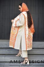 • جنس این مانتوی زیبامون لینن سوزن دوزی هست که با لینن ساده ترکیب شده. پارچه ی این کار بسیار سبک و خنکه.ترکیب فوق العاده نارنجی و کرم این کار رو خیلی جذاب کرده