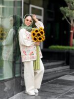 جنس وست قشنگمون لینن تمام سوزندوزی Vip هست.وست کامل لایی کشی شده و مغزی سبز لبه های کار دوخته شده
