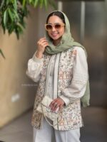جنس این وست قشنگمون لینن سوزندوزی و قیطون دوزی شده هست.لبه های کار لینن ساده کار شده و قیطون دوزی.وست کامل لایی کشی شده