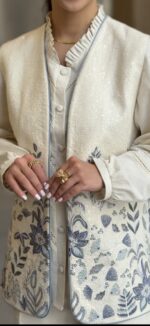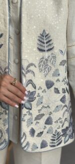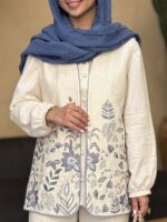 وست جذابمون از جنس لینن سوزندوزی شده هست.قسمت های بالای وست تمام پولک دوزی شده.لبه های کار مغزی دوزی شده و برای ایستایی بهتر وست کامل لایی کشی شده.