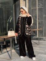 جنس وست قشنگمون مخمل سوزندوزی شده هست.وست کامل لایی کشی شده.شومیز و شلوار هم جدا قابل سفارش هست.