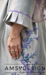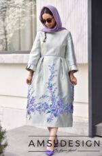 جنس پیراهن بهاری و قشنگمون ژاکارد ترک بسیار با کیفیت هست.زمینه ی پارچه یه طوسی خیلی روشن هست با لمه های سبز و طرح شکوفه های یاسی.مناسب برای فصل بهار و تابستان