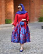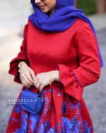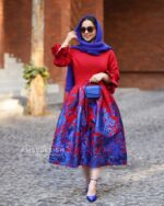 جنس این پیراهن پرطرفدارمون یه ژاکارد حاشیه دار خیلی خوشرنگه.روی پارچه ی قسمت ساده ی بالاتنه یه بافت خیلی قشنگ داره.
