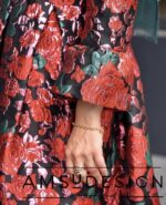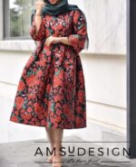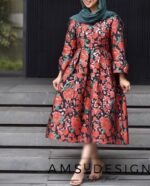 جنس این پیراهن خوش رنگ و لعابمون ژاکارد بسیار با کیفیت هست. ترکیب قرمز و سبز روی زمینه ی مشکی با لمه های رز گلد. قد حدود 120-125