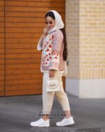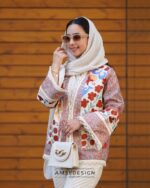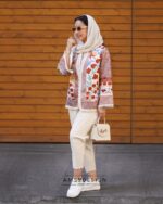 جنس کت قشنگمون پارچه ی بخارادوزی کار دست هست که با پارچه ی کوکدوزی کار دست ترکیب شده.سر آستین ها و لبه ی کت یه نوار خیلی قشنگ کار شده.