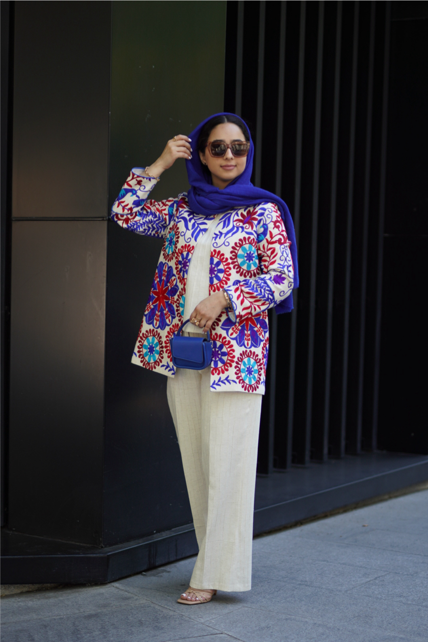 جنس این کت قشنگ لینن بخارادوزی شده هست.کت برای ایستایی بهتر لایی کشی شده