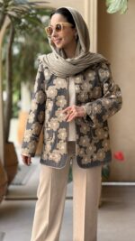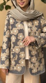 جنس کت قشنگمون مخمل هست. کت کامل لایی کشی شده و لبه های کار مغزی دوزی شده.