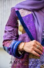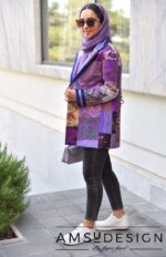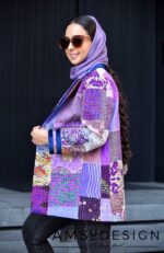 کت چهل تکه ی ابریشمی که روی کار با دست کوکدوزی شده.کت به صورت کامل لایی کشی شده.روی آستین و یقه نوار مخمل سرمه ای دوخته شده.
