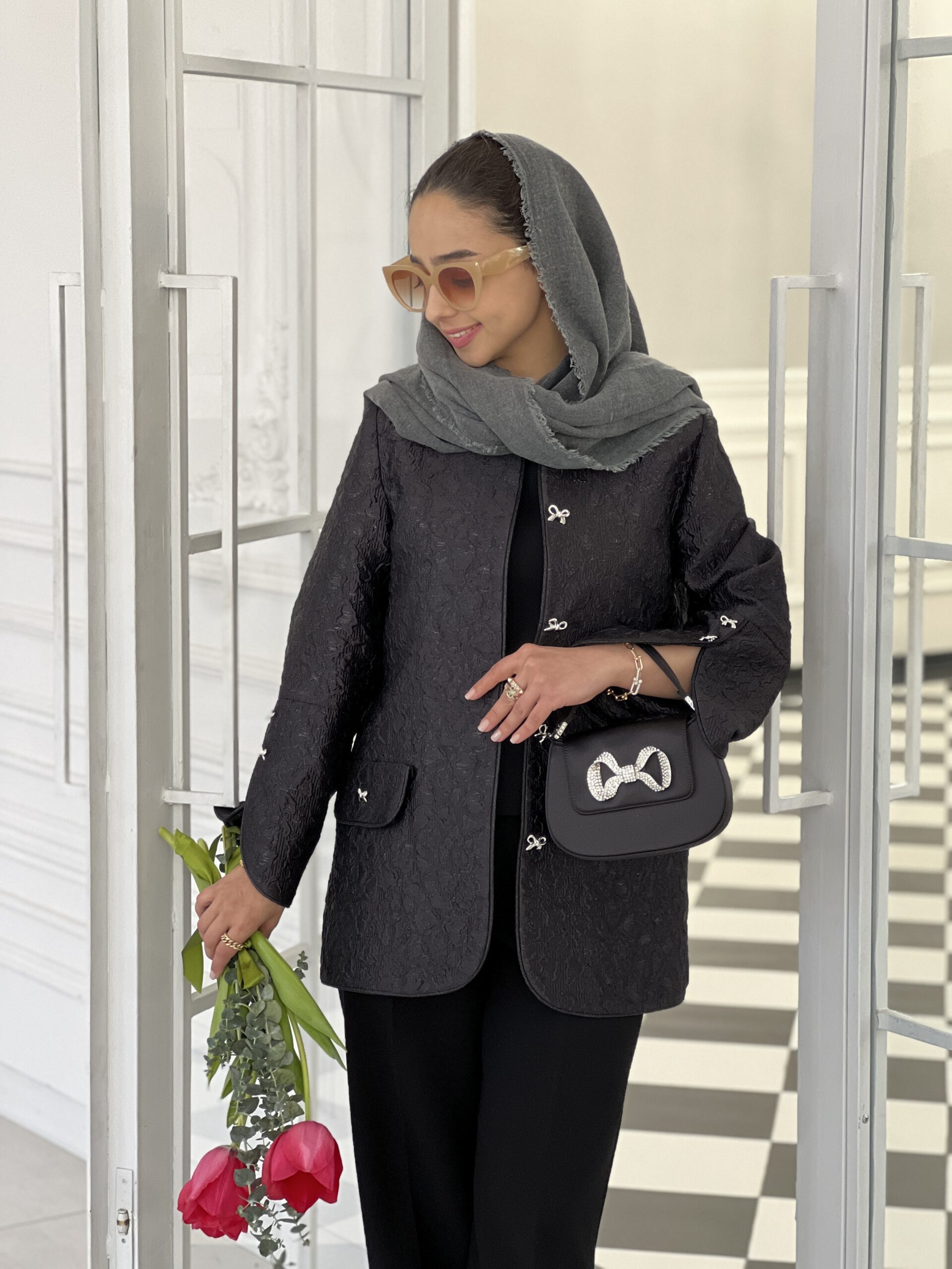 جنس این کت جذاب ژاکارد هست.کت کامل لایی کشی شده.لبه های کت مغزی دوزی شده.