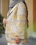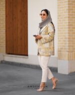 جنس کت زیبامون ژاکارد کوکدوزی خیلی قشنگه با ترکیب رنگی خردلی و طوسی و مغزی دوزی خردلی.کت به صورت کامل لایی کشی شده.