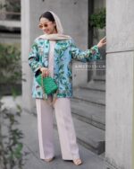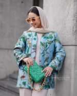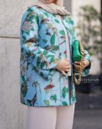جنس کت زیبامون ژاکارد هست.جلوی کت و سر آستین ها مغزی دوزی شده.کت به صورت کامل لایی کشی شده.
