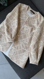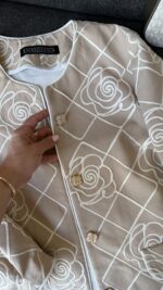 جنس این کت زیبا کتان هست. روی پارچه قیطون دوزی شده.لبه های کت قیطون دوزی شده.