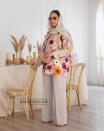 جنس این کت قشنگمون تور گل برجسته وارداتی و بسیار با کیفیت هست.کت به صورت کامل آسترکشی شده.